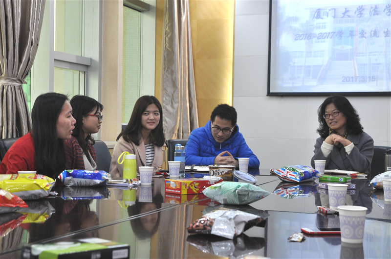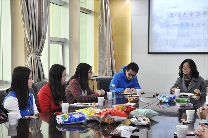 3月15日下午,厦门大学法学院2016-2017学年交流生茶话会在法学院举办,院党委副书记周蕾、团委副书记林旭荣、本科生辅导员杨璐出席了茶话会。