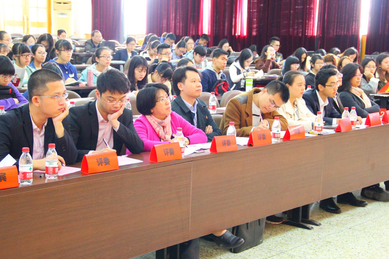 厦门大学法学院副院长何丽新教授,法理学教研室周赟教授、师资博士后王云清老师,福建联合信实律师事务所王毅律师、邱蔡乐律师,法学院2015级法律硕士研究生吴建茜和2016级刑法学专业硕士研究生刘艺涵共同担任决赛评委。