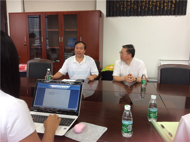 厦浪嘿呦实践队有幸见到了广州市知识产权法院的吴振副院长和邹享球技术调查官。吴院长亲切地接待了我们,介绍了他个人的任职情况和知识产权法院的法官到位情况、接收案件量以及选址萝岗区(现合并到黄浦区)的原因。无论是“萌萌地”称厦浪嘿哟为“嘿哟”实践队,还是自我介绍时让我们直接叫他的名字,这位带着书卷气的院长都给了厦浪嘿哟欣喜和感动。之后吴院长为我们引见了我国首位参与知识产权诉讼庭审的技术调查官邹享球,邹调查官给人一种典型的理工科感觉,说话谨慎、语速不快,有自己的独到见解。我们在一间大型会议室完成了采访——说是会议室,实则是大型办公室。厦浪嘿哟也因此见到了知产法院的工作常态——有序而繁忙。