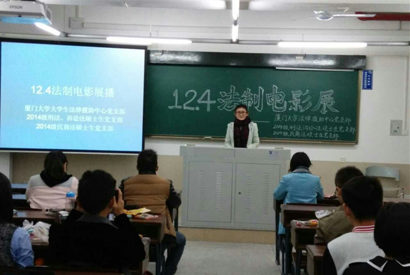 2014年12月5日晚7点,由厦门大学大学生法律援助中心党支部、2014级刑法、诉讼法硕士生党支部、2014级民商法硕士生党支部共同举办的“12.4法制电影展”活动在法学院A301教室顺利开播。