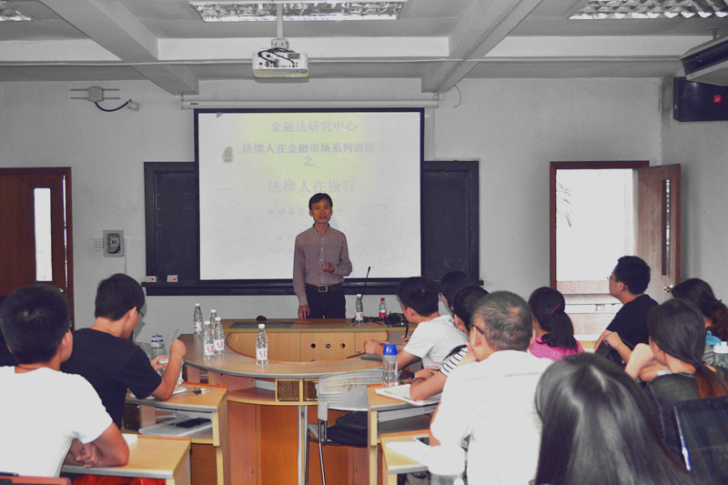 2014年10月27日上午九点,金融法研究中心“法律人在金融市场系列讲座——法律人在投行”在我院B420如期举行。本次讲座邀请了我院2005级经济法学硕士刘小牛师兄,刘师兄现就职于东吴证券投行部,于投资银行工作多年,具有丰富的理论与实务经验。李道进博士生担任本场讲座的主持人,刘志云老师也出席了本场讲座。