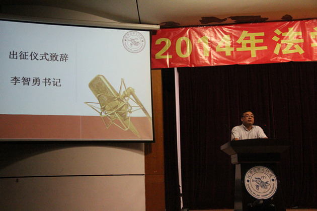 主持人宣布开幕后,党委书记李智勇为出征仪式致辞,在总结我院往年实践成果之后,他为今年的实践队伍提出宝贵的建议,并叮嘱同学们在社会实践中注意安全问题。