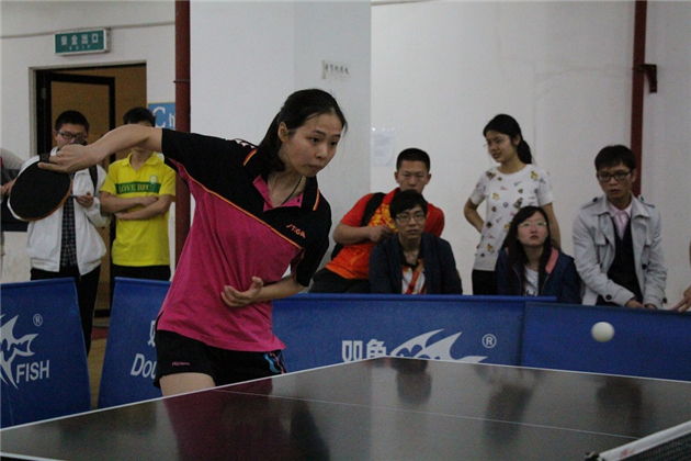 在女乒比赛中,自第一场起,我方队员便开局凌厉,抽拉不断,迅速进入状态,一阵强攻,以2比1拿下一场。随后上场的两名队员前期在对方的凶猛进攻下都被有所压制,但很快调整战略,步步为营,逐渐反超,连下两场。双打我方惜败。最终我院以3比1的大比分淘汰了经院代表队,顺利晋级冠亚军争夺赛。