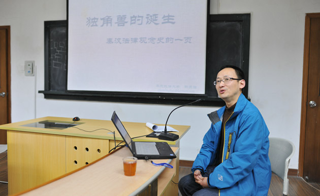 2015年1月18日18:30,华东政法大学陈灵海教授在B420教室为我校师生带来题为《独角兽的诞生——战国秦汉法律观念史的一页》的讲座。讲座由周东平教授主持,法学院和历史系的师生踊跃参加。