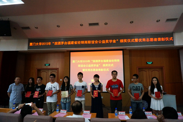 2015年6月11日,厦门大学2015年“国酒茅台福建省经销商联谊会公益奖学金”颁奖仪式暨优秀志愿者表彰仪式在化学报告厅隆重举行。