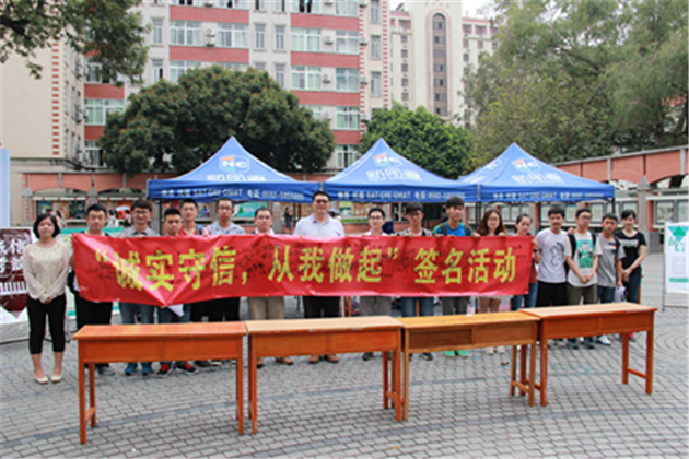 法学院陈同学表示:“第一次当‘诚实守信’主题教育宣传活动的工作人员,觉得这样的活动非常有意义,希望同学们在接下来的考试周好好复习,诚信考试,取得满意的成绩。”