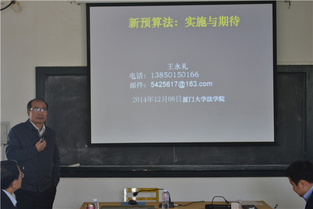 2014年12月6日上午9:30时,福建省人民政府副秘书长王永礼先生,应邀在我院B520教室做题为《新预算法的实施与期待》的学术讲座。厦门大学国际税法与比较税制研究中心(CITACT-XMU)廖益新教授主任主持了本次讲座,法学院财税法教研室李晓辉老师以及法学院财税法方向的硕博士研究生和部分本科生参加了本次讲座。