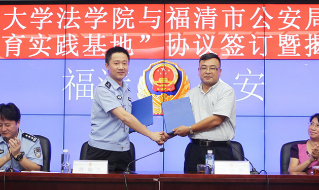 8月28日,厦门大学法学院和福清市公安局共建“法学教育实践基地”协议签订暨揭牌仪式在福清市公安局举行。我院党委书记李智勇、副院长何丽新、李兰英、副书记郭锦星,福清市公安局局长林晓东、政委陈明俤等出席了仪式。
