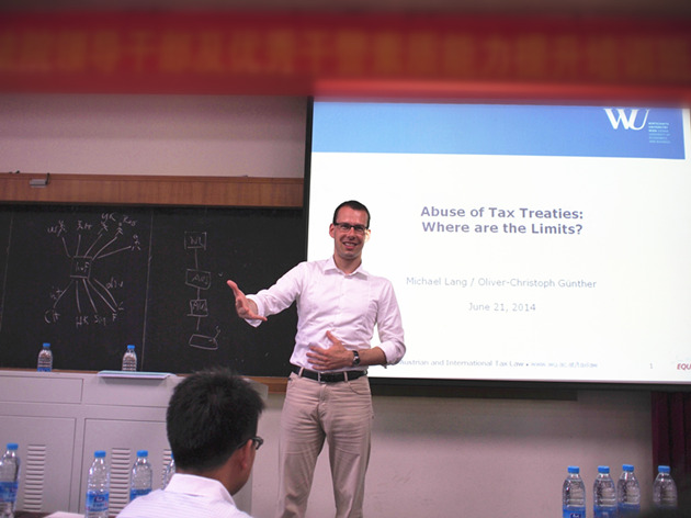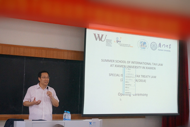 6月21日上午,2014年厦门大学国际税法暑期班在法学院B137开班授课。本次暑期班由厦门大学国际税法与比较税制研究中心(CITACT-XMU)和维也纳经济大学奥地利及国际税法研究中心联合举办。暑期班课程由维也纳经济大学教授、维也纳经济大学奥地利及国际税法研究中心主任、国际税法研究生(LL.M.)项目和国际商税法博士生(DIBT)项目主任Michael Lang教授,以及该中心Oliver-Christoph Guenther、Ina Kerschner、李娜、Marion Stiastny等研究员分别主讲。