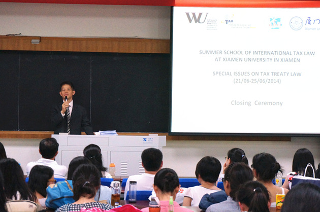 考试结束后的闭幕式上,WTS的上海办事处负责人吴先生向暑期班致辞。廖益新老师高度评价维也纳经济大学奥地利及国际税法研究中心的教学工作,也为学员们的学习热情所感动。Ina Kerschner祝贺学员们圆满完成学业,并与大家相约维也纳。朱炎生老师向学员们的认真和坚持表示感谢,也向辛勤工作的志愿者们表示感谢,并祝福大家在厦门大学有一段美好回忆。