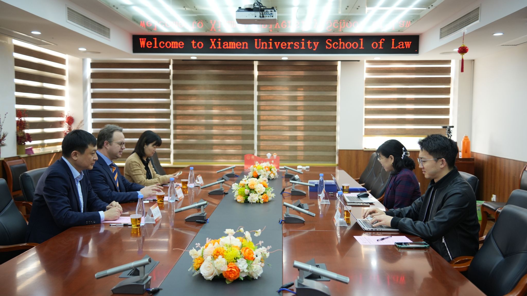 会上,Dominik Wanner教授介绍牛津大学伍斯特学院情况,随后从项目起源、课程设置、师资力量、生源情况等方面全面介绍课程项目。韩秀丽教授对来宾一行表示欢迎,随后简要介绍我院情况,重点对“中国-OECD联合培养税务法学硕士项目(COTP)”、“厦门国际法高等研究院暑期研修班”等学院特色项目进行介绍。双方主要围绕牛津大学伍斯特学院证书课程项目展开交流,就项目合作达成初步共识。