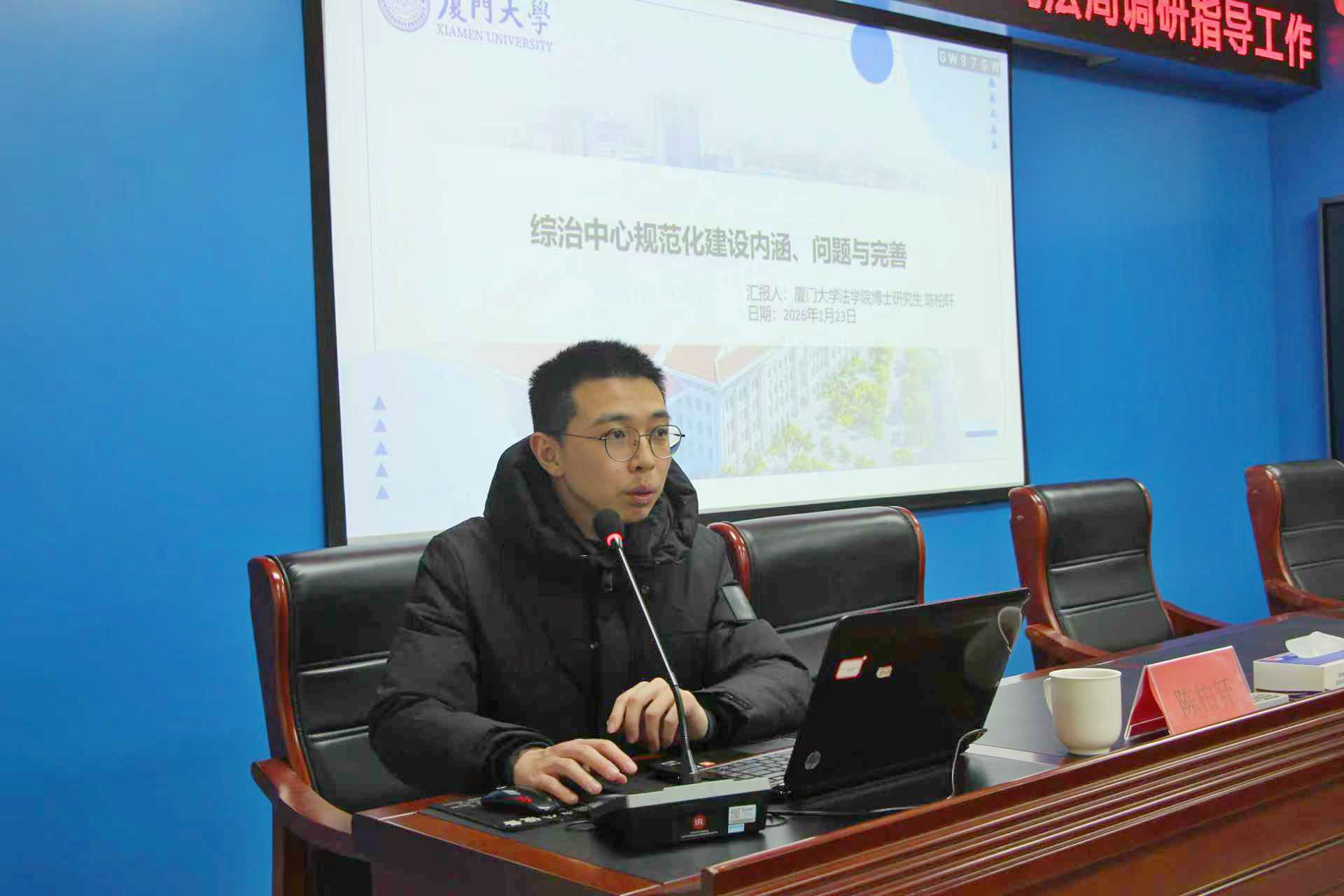 在县司法局,实践队员、2024级博士研究生陈柏轩为当地党政干部等作“综治中心规范化建设内涵、问题与完善”专题讲座,为综治中心规范化建设提出针对性建议。“讲座既有理论深度,又贴近实际,为我们破解治理难题提供了新思路。”听完讲座后,当地干部颇有感悟。