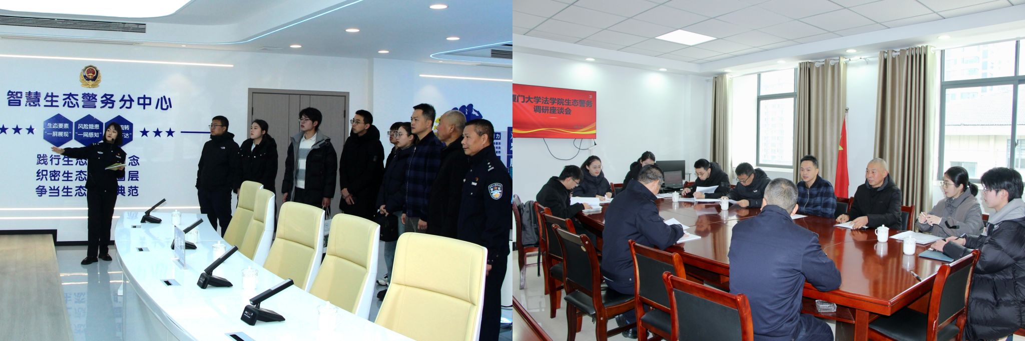 在县森林警察大队智慧生态警务中心,大数据监测屏实时跳动,无人机巡查全域覆盖。“我们实现了24小时守护山林溪流,生态保护全域覆盖、精准发力。”民警自豪地介绍道。实践队围绕智慧警务与生态法治的融合发展进行研讨,挖掘提升生态监管法治化、智能化水平的“厦大方案”。