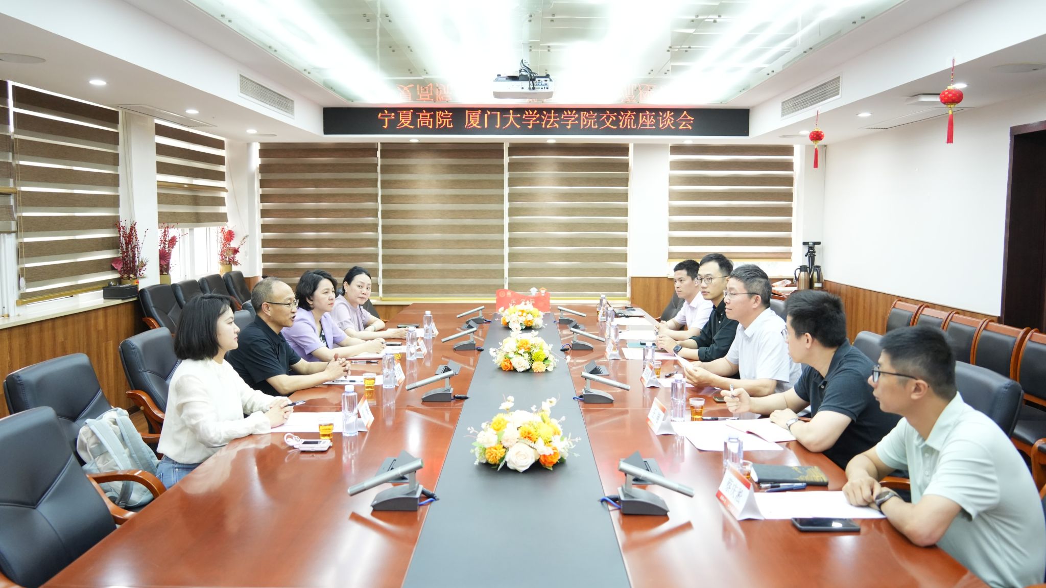4月15日上午,宁夏回族自治区高级人民法院(以下简称“宁夏高院”)干部处副处长(主持工作)王宏强等一行来院洽谈合作,福建省高级人民法院市县干部处副处长、三级调研员蔡学勤,厦门市中级人民法院干部处处长、一级调研员吴密菱陪同来访,法学院副院长郑永宽、党委副书记吴光锡、王翔副教授、汪东升助理教授等热情接待来访,双方在C220会议室进行座谈交流。