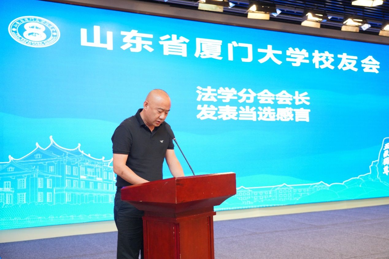 随后,刘磊代表分会发表就职感言,他表示将铭记母校、不忘师恩,凝聚在鲁法学校友力量,搭建交流合作平台,努力服务校友发展、助力地方法治建设。陈鹏对山东省厦门大学校友会顺利换届及法学分会成立表示热烈祝贺,充分肯定了校友会在弘扬嘉庚精神、凝聚校友力量、服务地方发展等方面的积极贡献,希望法学分会加强校友联动、深化资源共享,积极推动母校法学教育与地方法治实践协同发展。