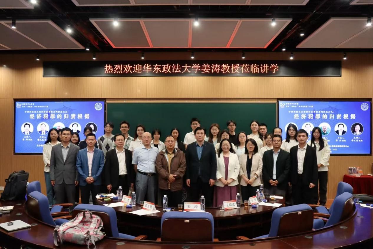 春余夏始,惠风和畅。4月25日,厦门大学法学院B138教室迎来了一场题为“经济犯罪的归责根据”的学术讲座。本次讲座系信实“青椒会”学术论坛第113期暨“中国刑法自主知识体系构建”系列讲座之九,由华东政法大学刑事法学院二级教授、博士生导师姜涛担任主讲人,厦门大学法学院刑法学科带头人李兰英教授主持,黑龙江大学法学院董玉庭教授、浙江工商大学法学院王昭武教授、中南大学法学院张杰教授、厦门大学法学院刘炯副教授、罗鸿燊助理教授担任与谈人。诸位嘉宾与法学院本硕博学生齐聚一堂,共同围绕讲座主题展开深入探讨与思想碰撞。