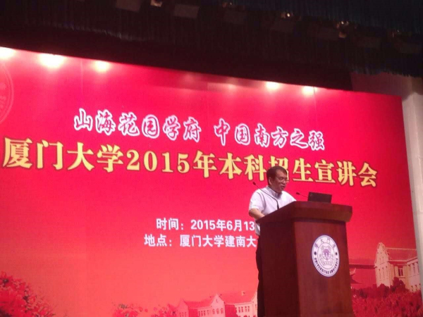 2015年6月13日上午,厦门大学2015年本科招生宣传活动于建南大礼堂顺利举行。我院院长徐崇利、党委副书记周蕾、团委副书记林旭荣、教学秘书陈丽清以及部分学生代表参加了此次活动。
