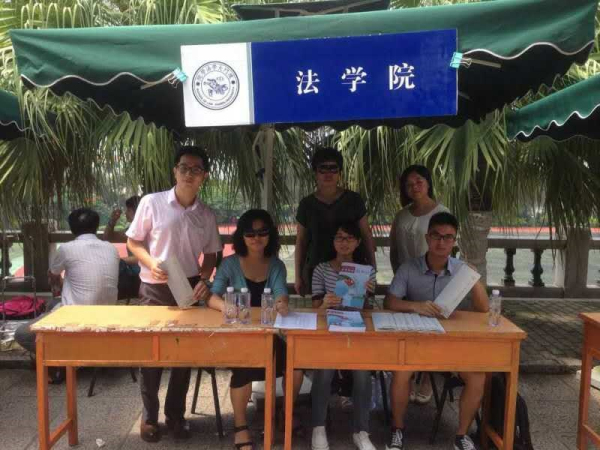 同时,我院从事学生工作和教务工作的老师与学生代表于建南大礼堂外的咨询点负责答疑解惑,对前来咨询的考生及家长分发我院招生宣传手册及厦门大学2015年招生指南等资料,并耐心地回答其问题。大部分考生及家长们对于报考法学专业的困惑主要集中在背法条、口才能力、法学就业前景、招生人数、专业能力、是否有文理科限制、能否报考双学位、是否接受转专业等几个方面,我院师生结合自身工作和学习经历给予了考生和家长们详细的解答。