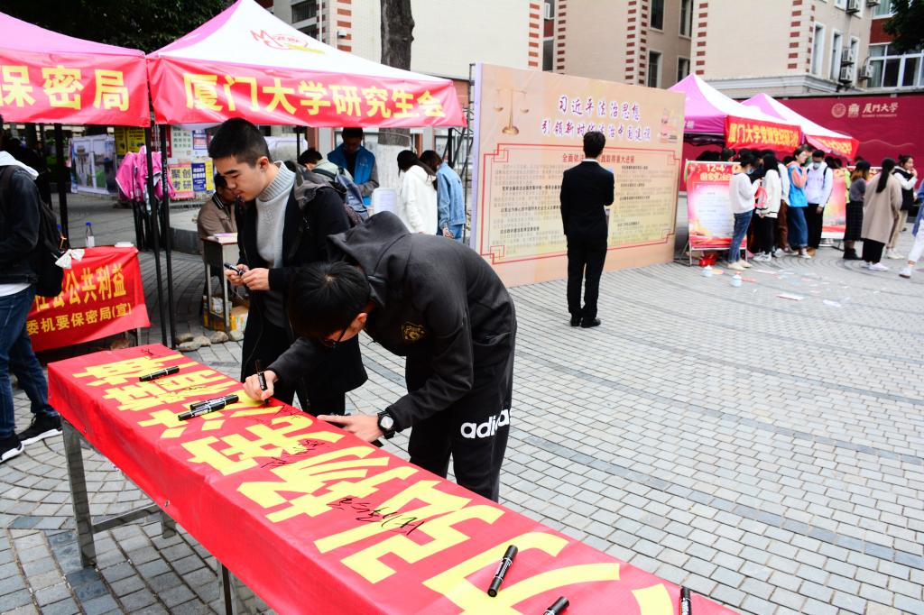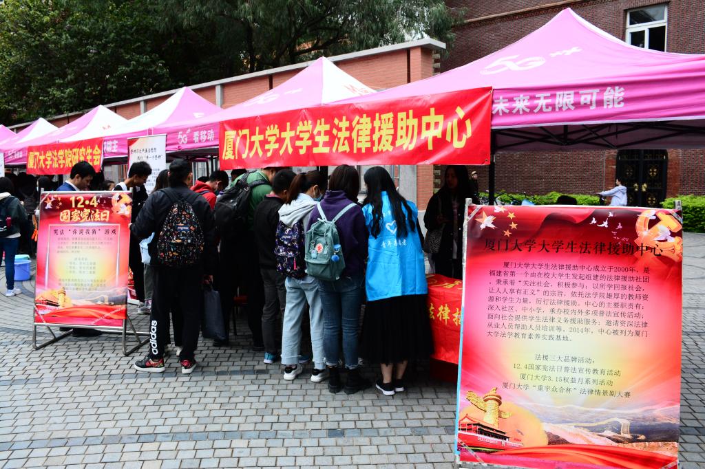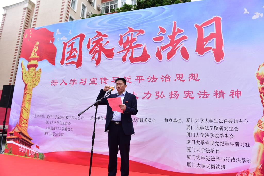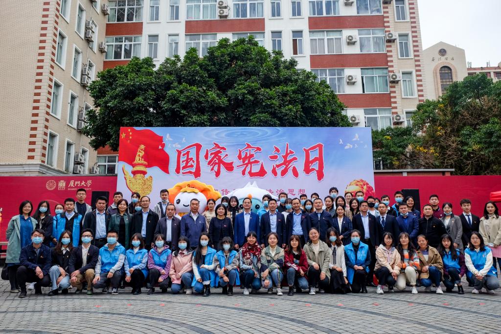为深入学习宣传习近平法治思想,弘扬宪法精神,维护宪法权威,推动宪法全面实施,12月4日上午,厦门大学2020年“国家宪法日”主题宣传教育活动在学校三家村广场隆重举行。