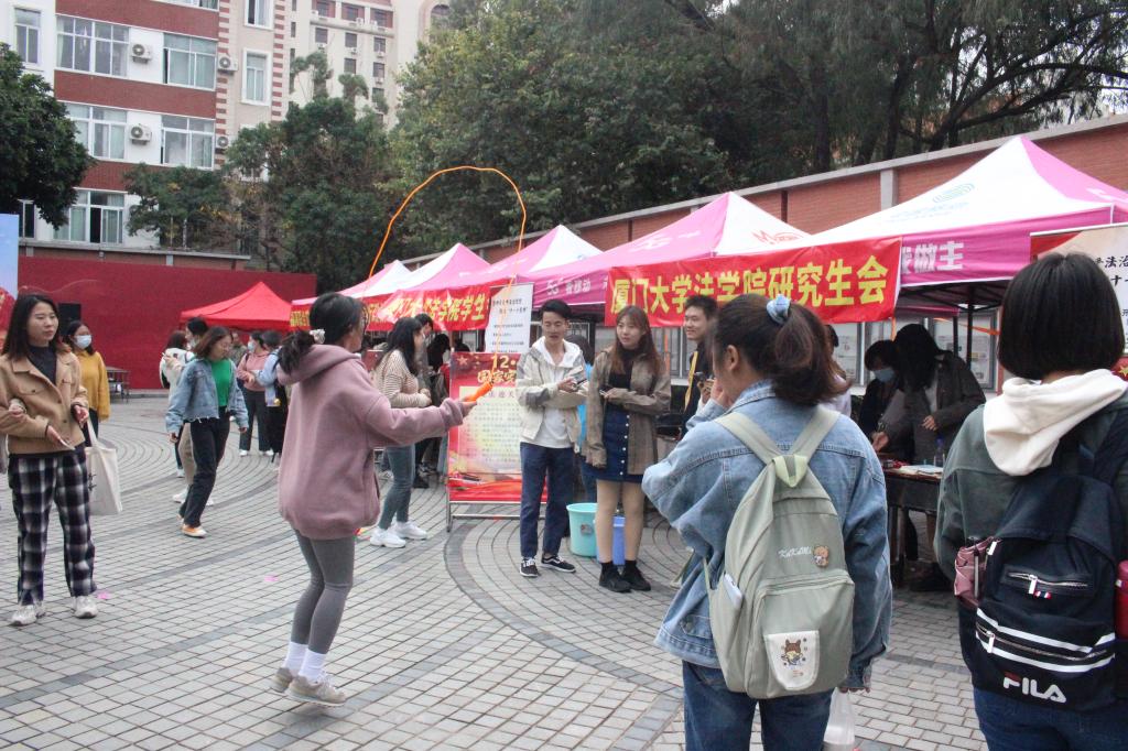 活动现场开展了宪法问答小游戏、民法典趣味宣讲、党规党纪套圈答题等丰富多彩的游园活动,同时还设置了法律咨询台,由福建联合信实律师事务所的专业律师为前来咨询的同学们就生活中遇到的法律问题答疑解惑。