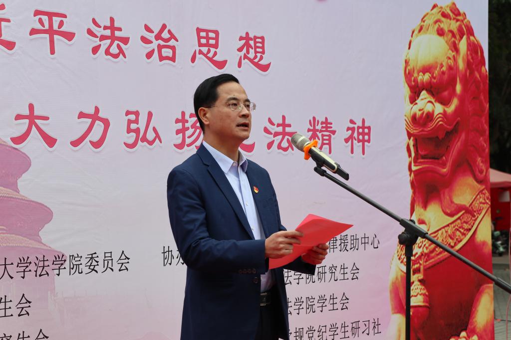 副校长邱伟杰致辞。邱伟杰表示,今年12月4日是我国第七个国家宪法日,全体师生要认真学习贯彻习近平法治思想和中央全面依法治国工作会议精神,深刻认识宪法的重要地位和重要作用,自觉维护宪法权威;要深入学习贯彻习近平总书记关于宪法的重要论述精神,把握正确政治方向;要加强宪法宣传教育,把弘扬宪法精神与推进全面依法治校紧密结合起来,不断完善相关工作机制,推动依法治校向纵深发展。