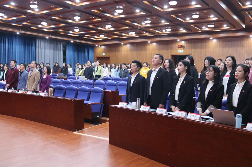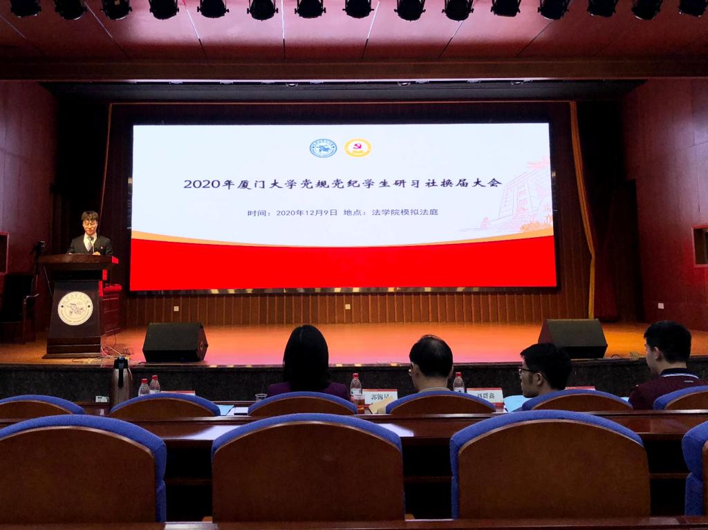 12月9日晚,厦门大学党规党纪学生研习社换届大会暨《讲好中国故事——关于叙事社会学的研究》专题党课在法学院模拟法庭圆满举行。法学院党委副书记郭锦星,社会与人类学院副教授刘子曦,法学院党委组织员刘群鑫,法学院团委副书记周晓牧,校团委科员、法学院辅导员林威丞等领导老师出席本次会议,研习社全体骨干成员及法学院全体研究生党员参加会议。