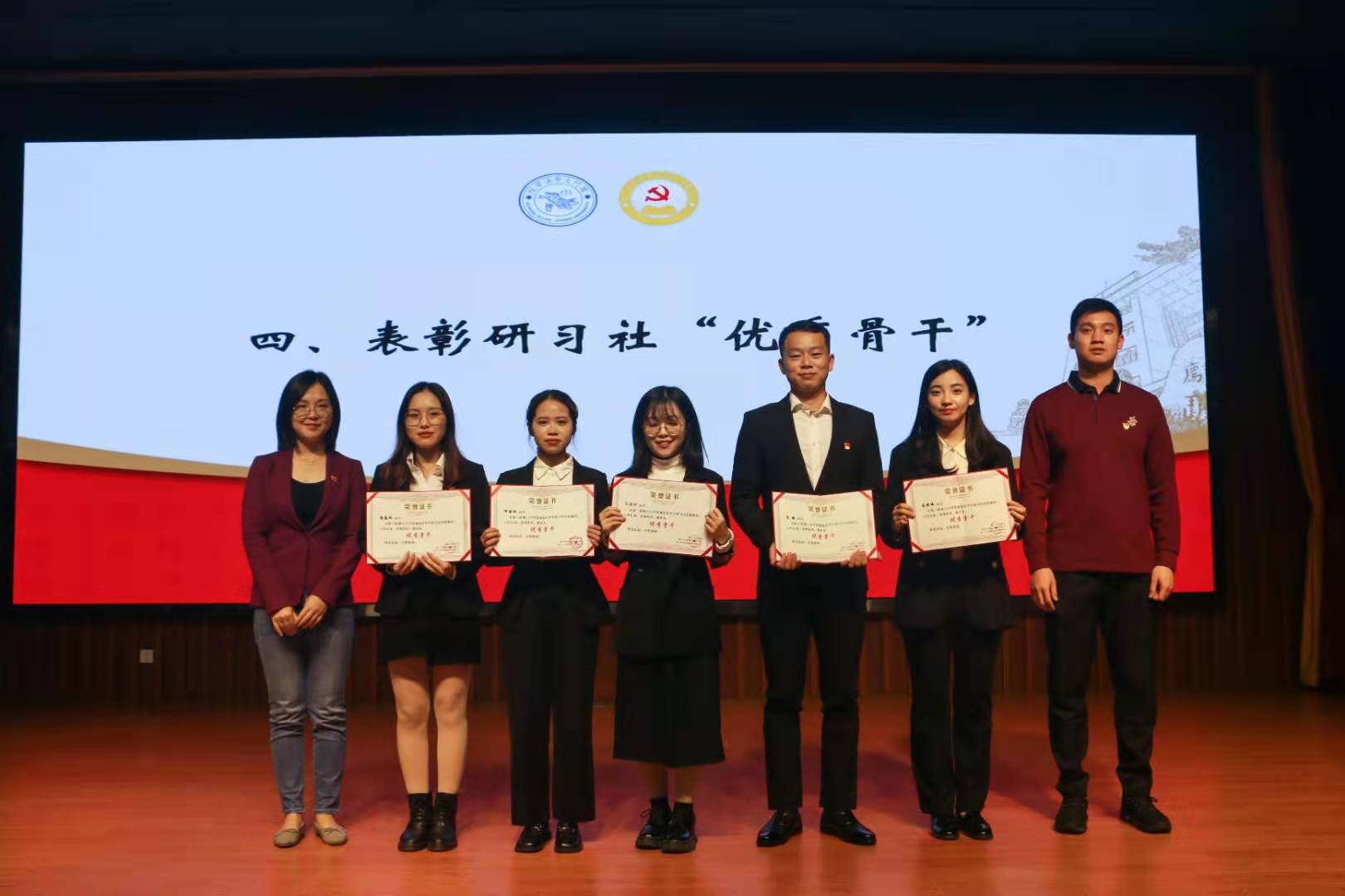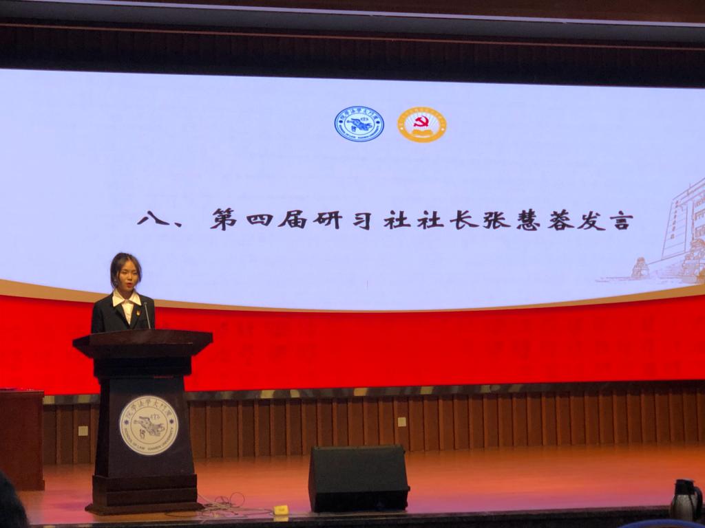 张慧蓉代表研习社第四届骨干成员发言。她从组织、理论、实践和影响力四个方面,对接下来一年研习社的工作进行了总体规划和展望。她表示,将带领研习社在前三届工作的经验基础之上,努力创新、扎实工作、学出成绩、做出水平,在建党100周年、建校100周年来临之际,带领研习社迈上新的台阶。