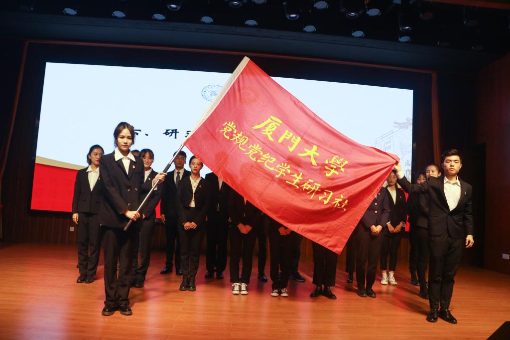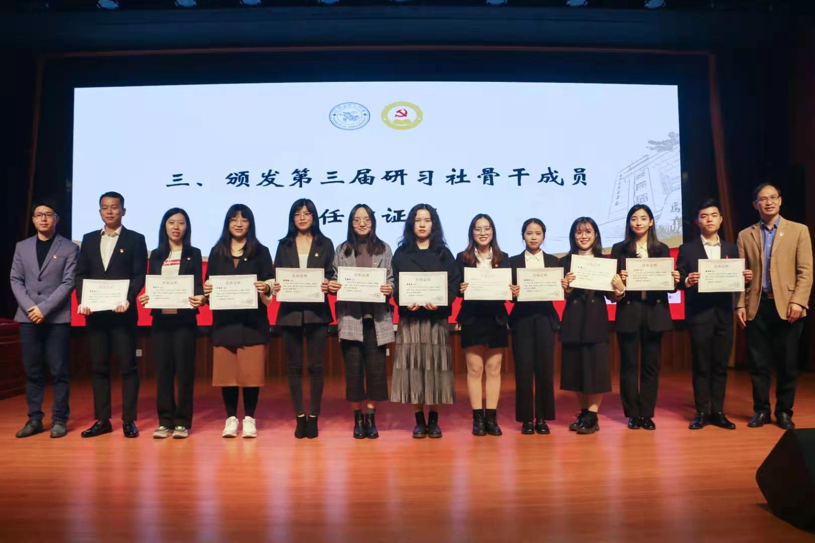 研习社指导教师周晓牧宣读研习社新一届骨干成员任职名单。根据《厦门大学党规党纪学生研习社社团章程》,经本人申请、组织考察等程序,法学院党委决定任命张慧蓉等20位同学为厦门大学党规党纪学生研习社第四届骨干成员。