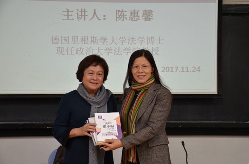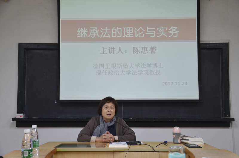 2017年11月24日下午,中国台湾的政治大学法学院专任教授陈惠馨女士应邀在厦门大学法学院B520教室举办了题为“继承法的理论与实务”的讲座。讲座由法学院民商法研究所主任蒋月教授主持。来自民商法等专业的硕博研究生们济济一堂,饶有兴趣地参与其中。