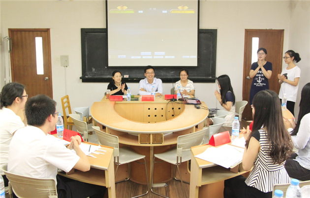 决赛于7月9日下午14时30分在法学院B520教室展开。与会的嘉宾有法学院党委副书记周蕾老师、团委副书记林旭荣老师及北京盈科(厦门)律师事务所文化品牌部主管杨昔宁,法学社王莹同学担任本次比赛主持人。此外,法学社还有幸邀请到盈科律师事务所的涉外专业律师、高级合伙人叶小培律师,厦门大学法学院国际法教研室张膑心老师以及法学院王燕同学担任评委。