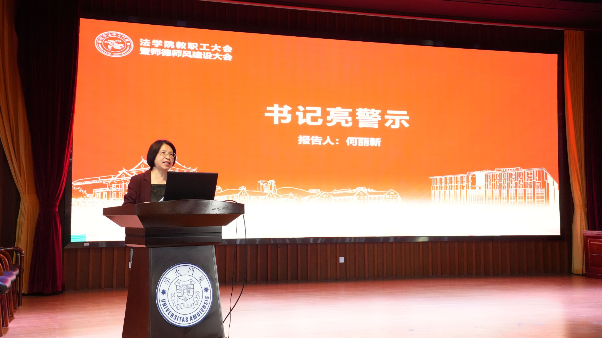 党委书记何丽新作“亮警示”教育。她聚焦“守底线、明红线”,从学术不端、违规兼职、育人责任缺失等师德违规行为典型案例入手,特别就新型师德违规行为进行深度剖析,以案明纪、以案释法,警示全体教职工时刻紧绷师德师风这根弦。同时,她通报了学院近期新大楼使用、科研管理、巡视整改等重点工作进展,强调要深入学习贯彻习近平总书记对全面依法治国工作作出的重要指示精神和中央全面依法治国工作会议精神,持续强化师资队伍建设,为推动厦大法学学科发展迈向新百年新征程、服务中国式现代化建设培养更多德法兼修、明法笃行的优秀人才!