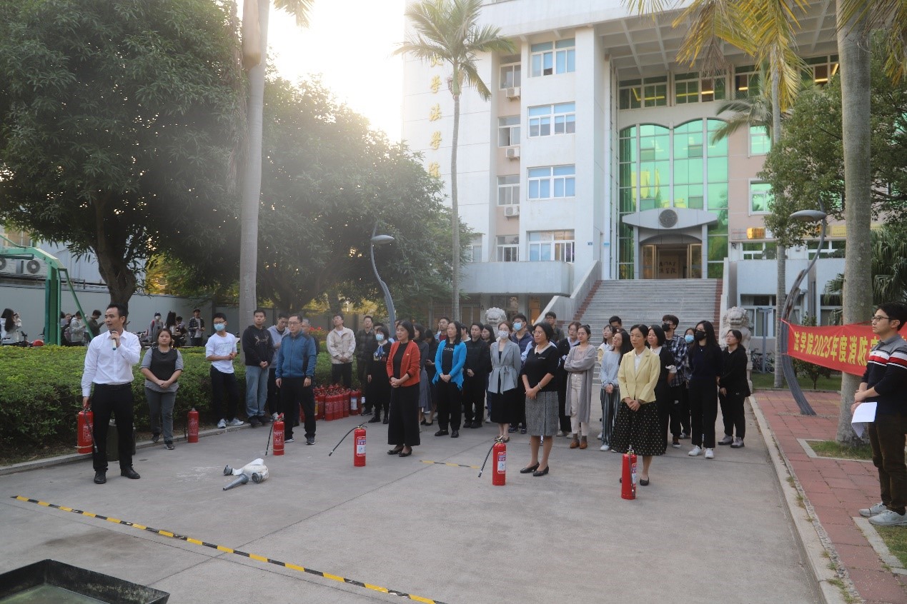 本次演练,学院邀请了丹田物业厦门大学项目负责人涂晓荣进行消防安全知识普及,讲解灭火栓和灭火器的使用技能。