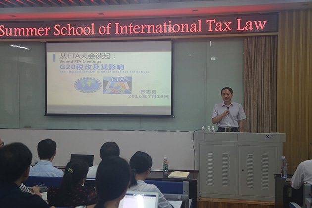 2016年7月18日9点30分,法学院90周年院庆系列讲座“从FTA大会谈起:G20税改及其影响”在B137教室成功举办。主讲人为国家税务总局原副局长、中国国际税收研究会副会长张志勇先生,法学院副院长朱炎生教授主持讲座。2016年厦门大学国际税法暑期班的学员参加了此次学术讲座,现场座无虚席。