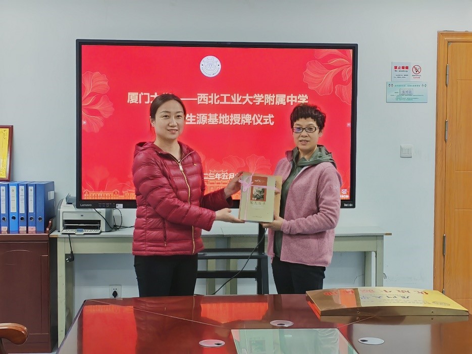 9日上午,招生宣传组前往陕西师范大学附属中学,与陕师大附中常务副书记董喜林、招生办主任刘璐等进行座谈,董副书记对陕师大附中及其历年高考情况进行了介绍,招生宣传组简要介绍了厦门大学及后续对陕的招生宣传工作计划,双方座谈后,进行了优质生源基地授牌仪式,并向陕师大附中赠送厦大书籍及相关招生资料。