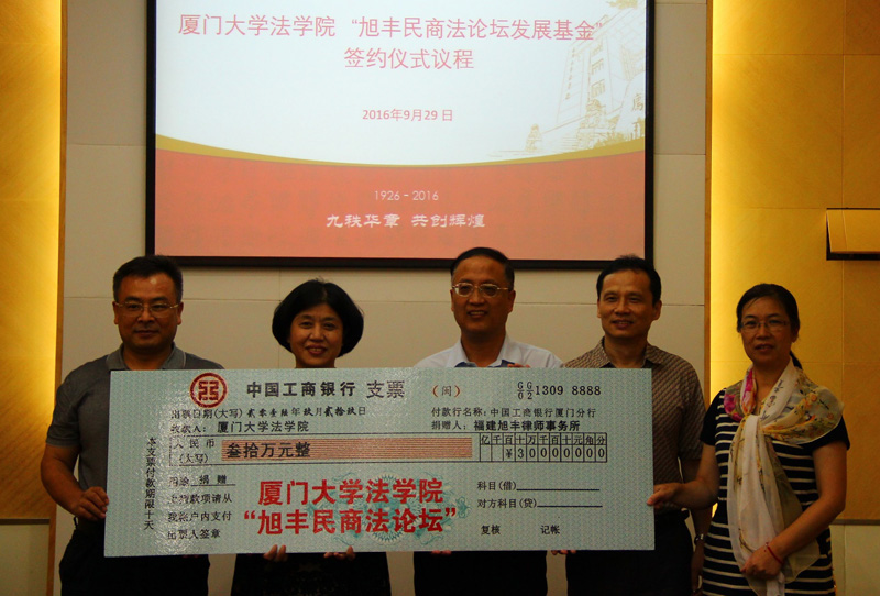 2016年9月29日,在法学院C519会议室隆重举行了“旭丰民商法论坛发展基金”签约仪式。