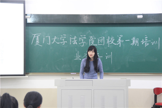 12月15日晚上7时,厦门大学法学院团校第一期培训班之业务培训在a104教室展开,团校全体学员参加了本次培训。本次培训由团总支书记程雪然主持。