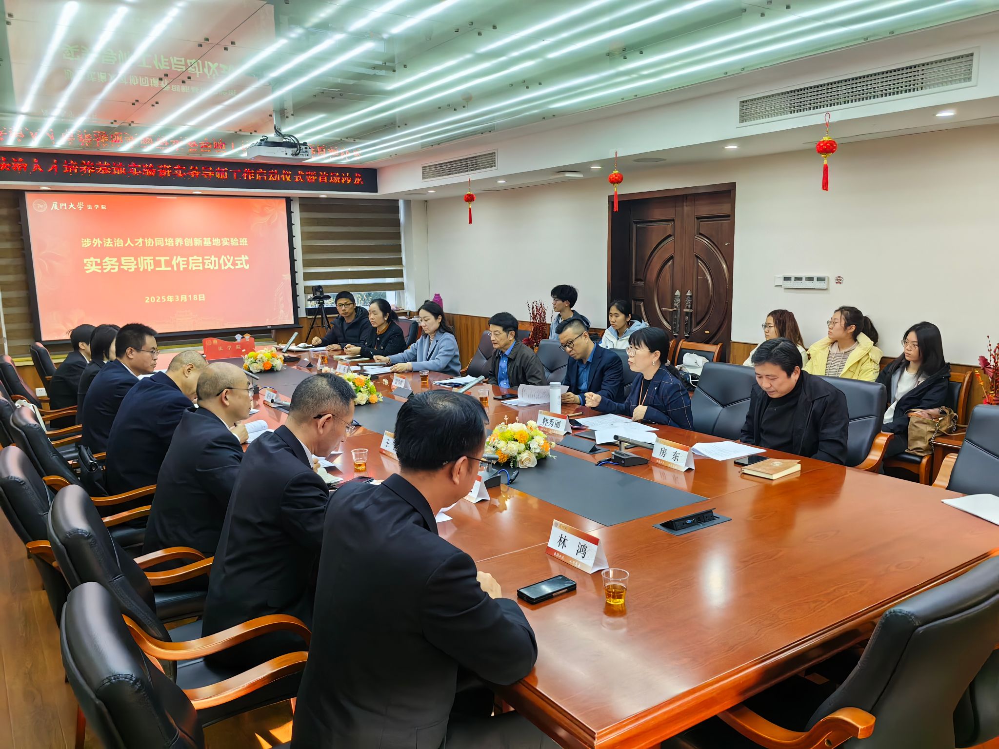 3月18日下午,涉外法治人才协同培养创新基地实验班实务导师工作启动仪式暨首场沙龙活动在法学院C220举行。厦门市中级人民法院副院长刘新平,厦门市中级人民法院、湖里区人民法院、思明区人民法院相关负责人,厦门大学法学院院长陈鹏,副院长韩秀丽、王杏飞,党委副书记吴荻,教师代表曾华群教授、房东副教授,以及实验班学生代表参加活动。活动由吴荻主持。