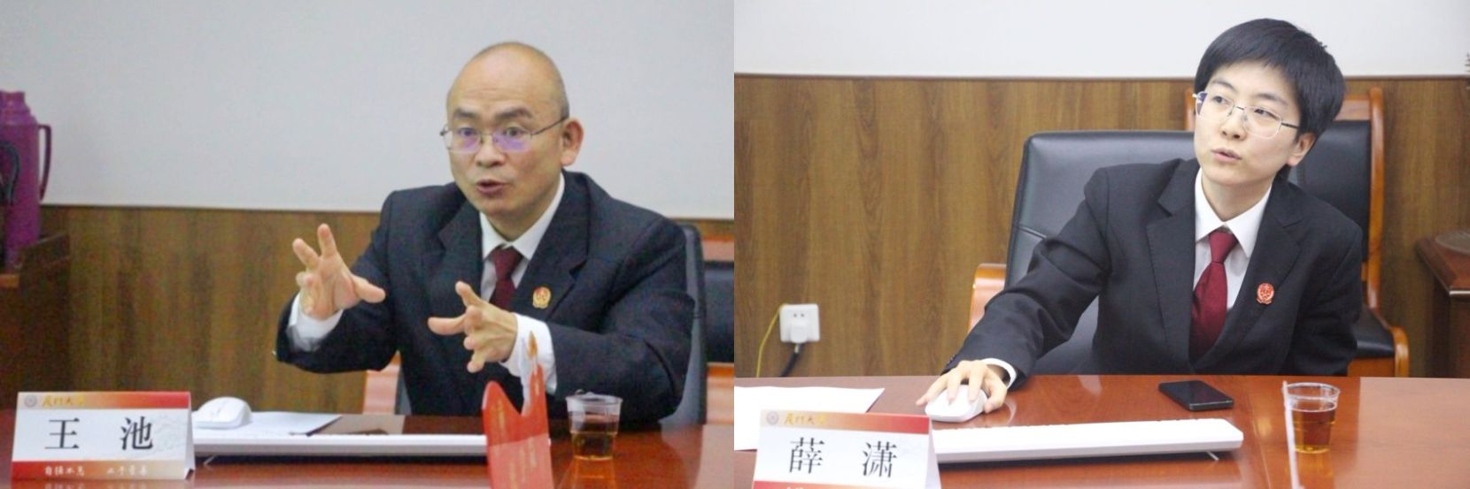 随后,吴荻宣读实务导师名单和学生分组名单,韩秀丽就实务导师的具体工作内容进行了介绍。厦门市中级人民法院翟伟坤、张宏伟、王池、陈慧琳,湖里区人民法院姚亮、薛潇,思明区人民法院林鸿7位法官成为实验班实务导师。