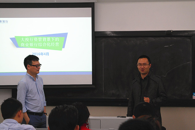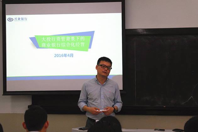 2016年4月15日晚7点,由厦门大学法学院金融法研究中心和福建远大联盟律师事务所联合主办的“厦门大学‘远大’金融法高端论坛”系列讲座之“大投行资管背景下的商业银行综合化经营”在我院B421教室如期举行。本次讲座有幸邀请到了兴业银行股份有限公司长沙分行金融市场部总经理、分行信用审查委员会委员、分行投资管理委员会委员蒋宇轩老师,厦门大学法学院经济法教研室毛海栋老师主持了本次讲座。