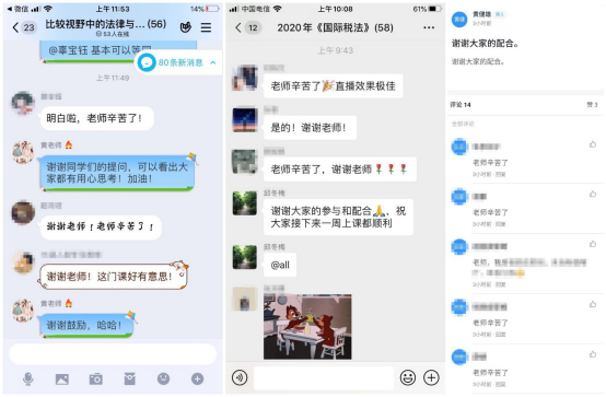 网络教学的方式获得了学生的认可。虽然延期开学,但新的教学手段使同学们在家中也能保持上课学习的状态。网络教学还为同学们提供了更加便利的交流平台。有些课下同学们意犹未尽,还在群里展开更加深入的研讨。