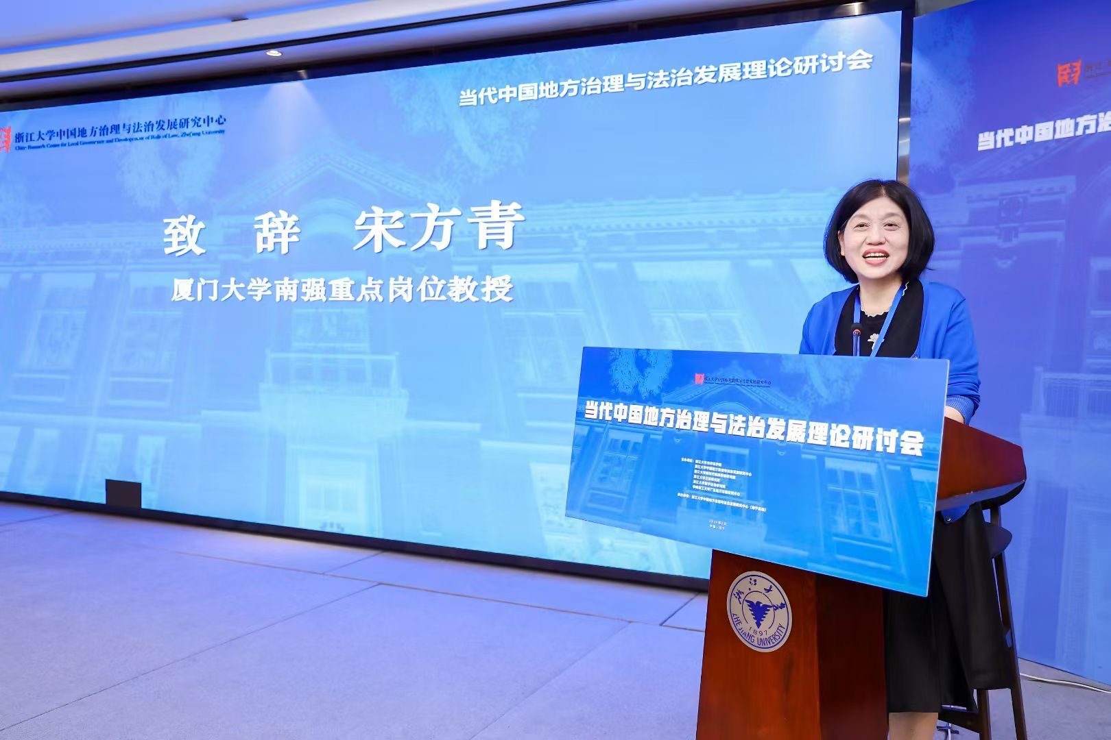 宋方青教授在开幕式上进行致辞,表达对会议的期许与祝愿。在“地方法治:立法创新与治理转型”专题研讨中,她作为评议人,认真听取各位专家发言,并结合自身研究与思考,为议题讨论提供新的视角,助力论坛相关问题的深入探讨。此外,宋方青教授还承担了大会交流环节的主持工作,努力推动与会专家的互动与交流。