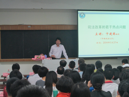 凤凰花还未燃烧的季节,我们迎来了一场意义深刻、气氛热烈的学术讲座。2014年5月27日晚7点,在法学院B137教室,著名的诉讼法学家,卞建林教授为我院带来了一场名为“司法改革的若干热点问题”的讲座。本次讲座由我院副院长李兰英教授主持,来自重庆市第二中级人民法院、重庆市江北区人民法院、广东省佛山市禅城区人民法院、福建省永春县人民法院的法官们以及来自我院刑法教研室、诉讼法教研室的教师们和来自各年级、各专业的博士生、硕士生、本科生共同聆听了本次学术盛宴。