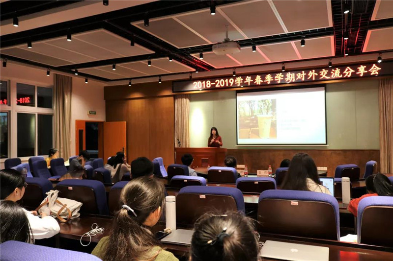 2019年3月28日18:20,2018-2019学年春季学期对外交流分享会在法学院B138顺利举行。院党委副书记张伟、团委副书记林旭荣、外事秘书吴夏咏出席本次活动。参与本次分享会的分享嘉宾有:赴比利时鲁汶大学交流的王楠菲、赴台湾大学交流的田瑞丽、赴台北大学交流的崔心怡和赴荷兰马斯特里赫特大学交流的章陈昊。