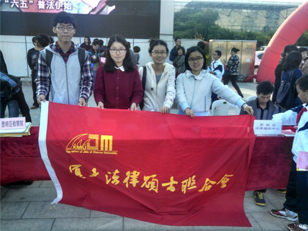 厦门大学法律硕士联合会携手厦门大学法律援助中心率领着14名法硕学子以“青年志愿者”的身份参与此次活动,协助思明区司法局积极开展了法律宣传与咨询,分发“六五”普法宣传材料,热情地为市民提供法律咨询,开展法律知识竞答活动,成为五一文化广场一道亮丽的风景线。