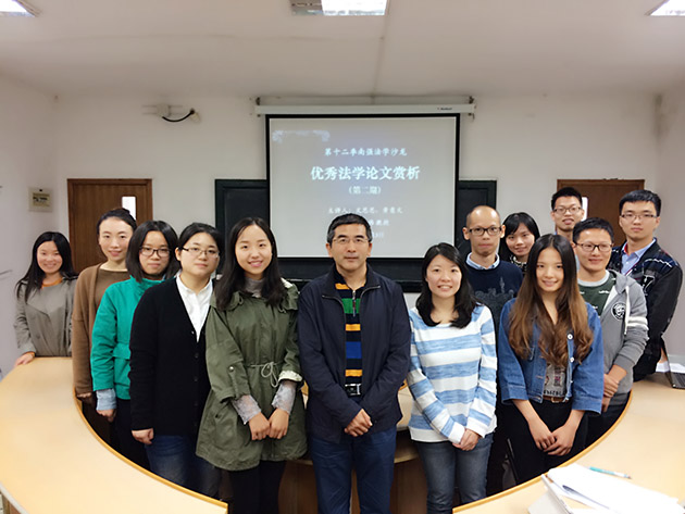 2015年12月3日下午14:30,第十二季南强法学沙龙之“优秀法学论文赏析”在法学院B520教室举行。本次沙龙主讲人为2015级研究生文思思与黄意文,2014级经济法学研究生许兴元担任本次沙龙主持,肖伟教授担任点评嘉宾。部分法学院研究生、本科生共同参与了本次沙龙。