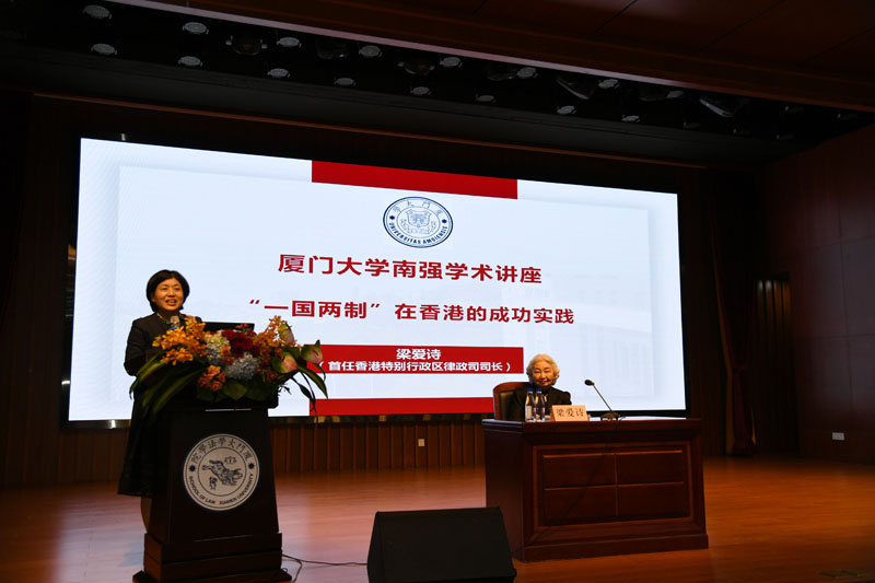 仪式结束后,梁爱诗教授为在座师生献上题为《“一国两制”在香港的成功实践》的南强学术讲座。