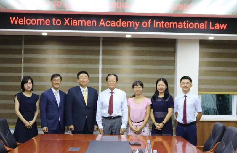 2018年9月12日下午,韩国外交部下属的韩国国家外交学院(KNDA)国际法中心代表团来访厦门大学法学院和厦门国际法高等研究院(“厦门研究院”)。该国际法中心参照厦门研究院国际法暑期班项目于2016年创设了首尔国际法研究院暑期班项目。韩国代表团一行三人包括KNDA国际法中心Sangmin Shim主任、Dok-ju Kim教授和Ji Hye Yoon研究员,我院廖益新教授、陈辉萍教授、于湛旻博士和杨帆博士与韩国代表进行了座谈。座谈会由陈辉萍教授主持。