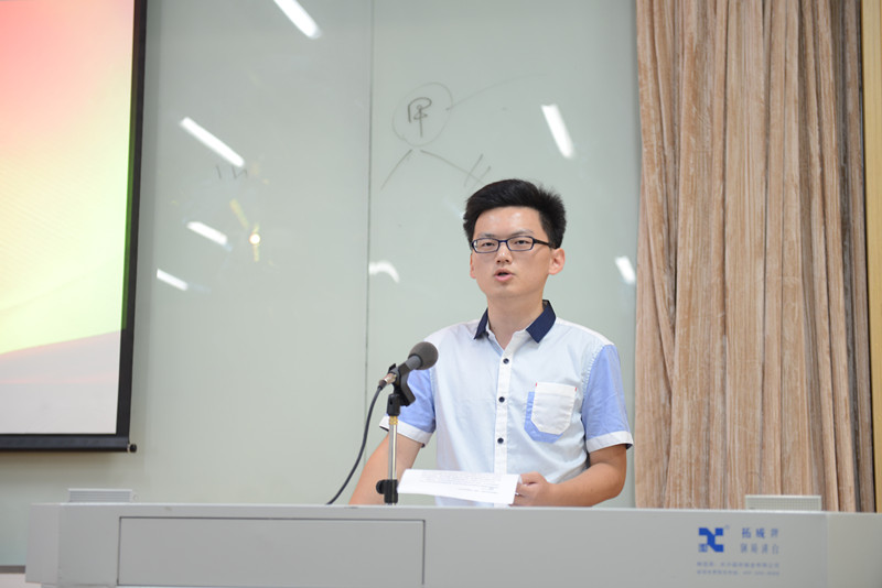 2016年暑期社会实践优秀实践队代表邱泽宇同学为大家介绍了实践过程中得到的宝贵实践经验与技巧,提醒同学们实践中可尽量发挥法科生的特色与长处。