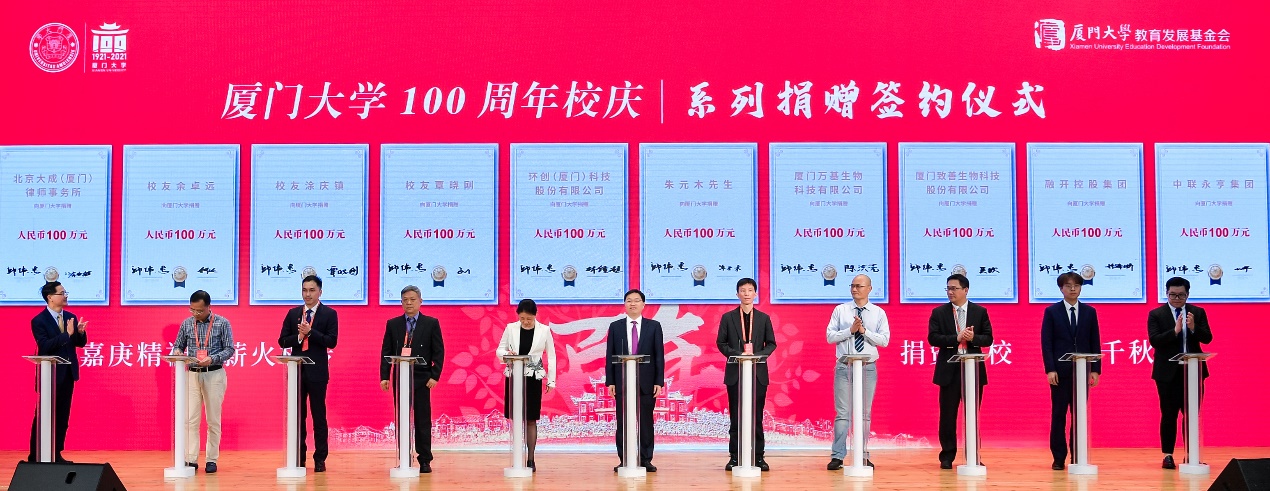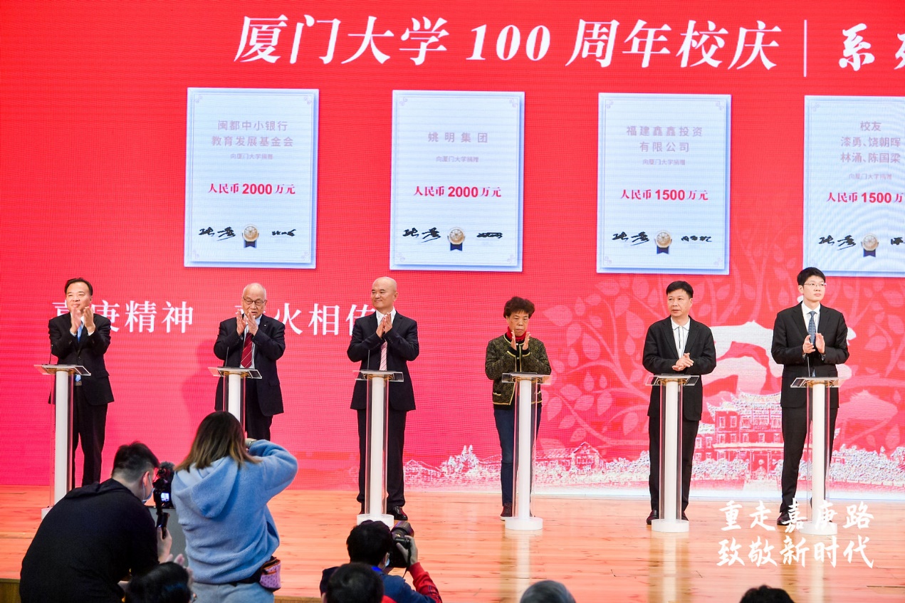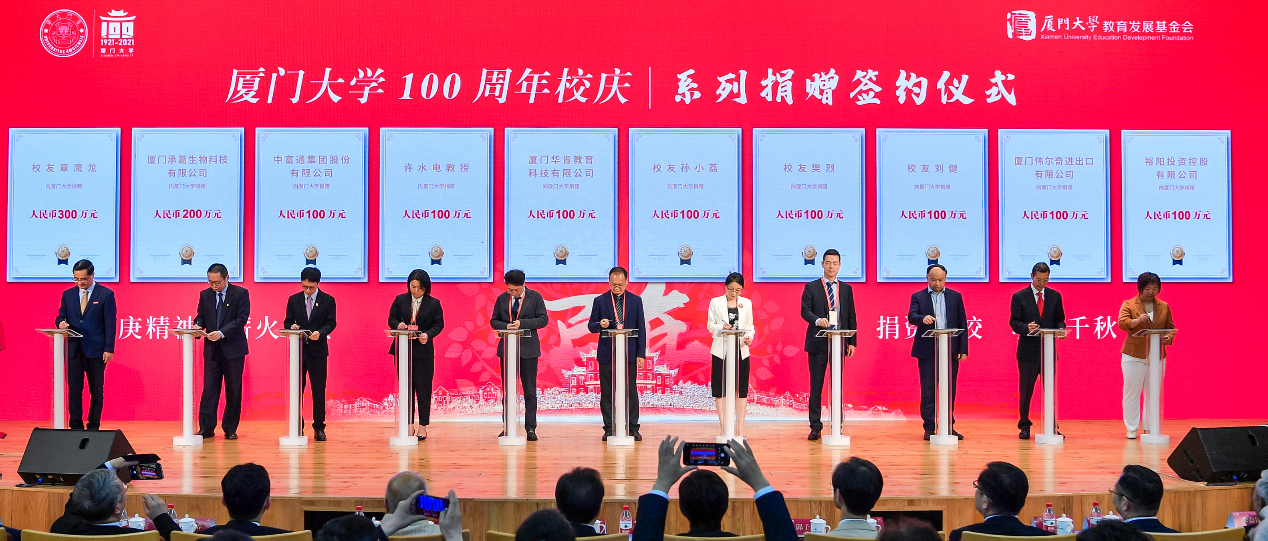 其中,北京大成(厦门)律师事务所、裕阳投资控股有限公司、恒申慈善基金会,林涌、漆勇、饶朝晖、陈国梁四位校友向厦门大学法学院慷慨捐赠,献礼母校百年华诞。