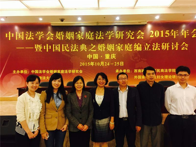 “金秋十月,文杏蒲扇”,2015年10月24日,由中国法学会婚姻家庭法学研究会主办、西南政法大学承办的中国法学会婚姻家庭研究会2015年年会在西南政法大学召开,我院蒋月教授、何丽新教授携博士研究生一同前往参会。